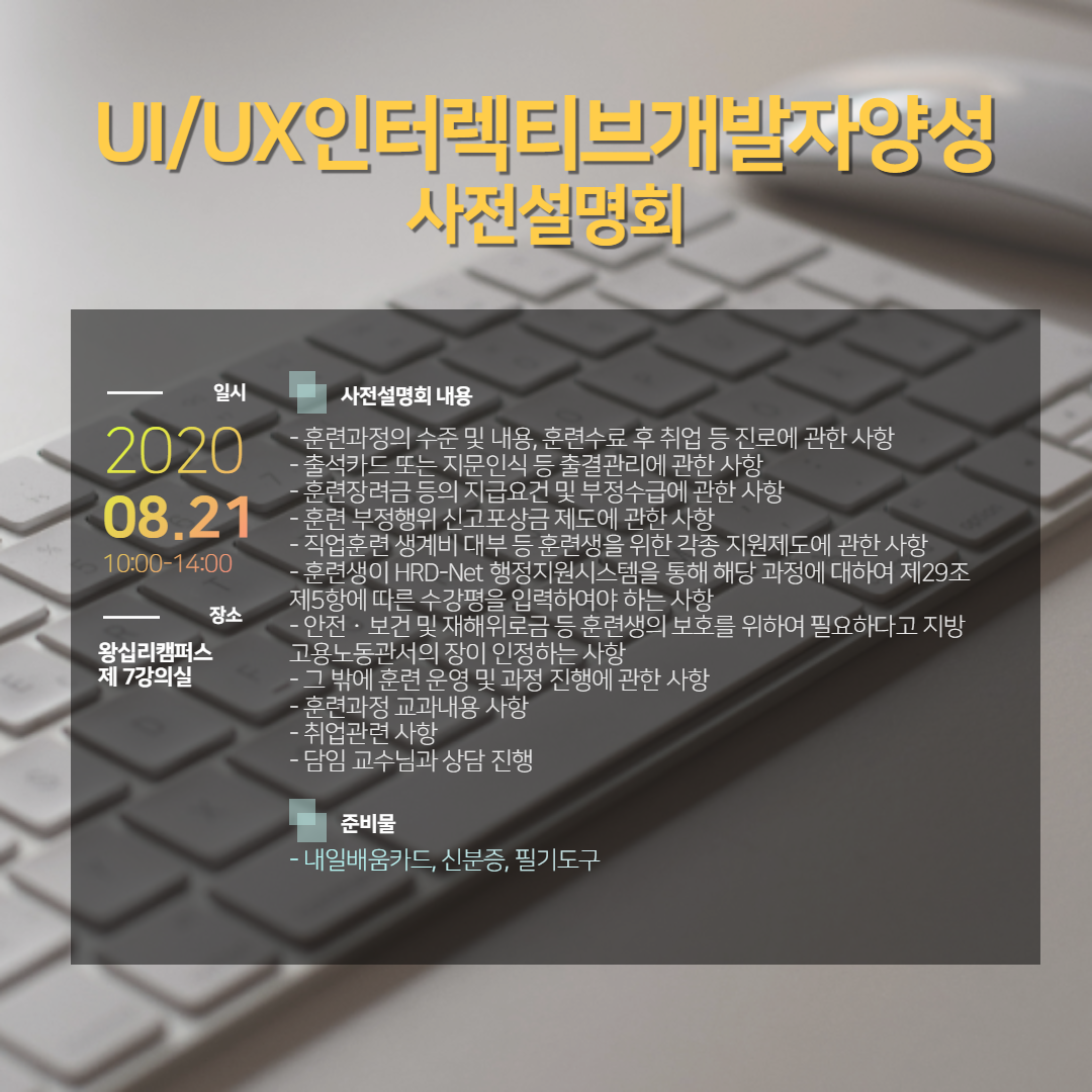 [왕십리] UI/UX인터렉티브개발자양성 사전설명회 일정안내