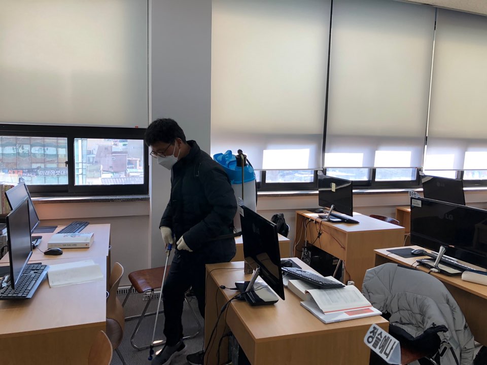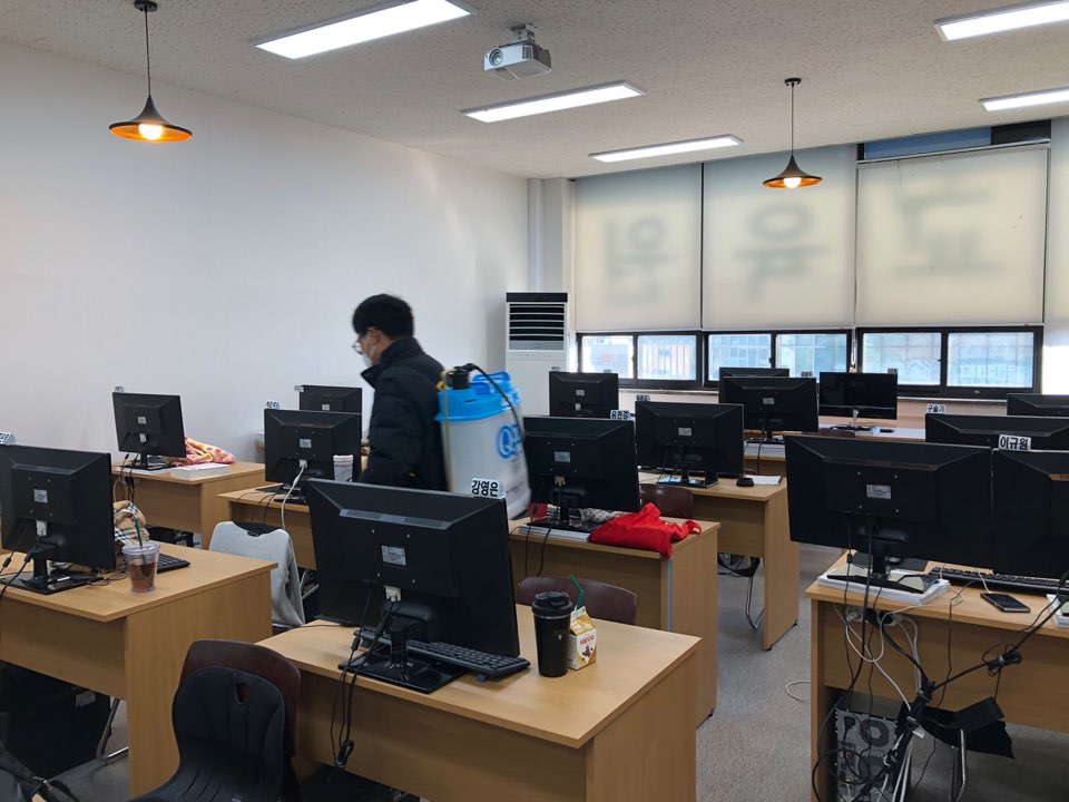 12월 14일(월) 구청지원으로 동주민센터에서 코로나 19 방역소독을 위해 방문하셨습니다. 교육원의 모든 강의실과 상담실, 사무실, 화장실 등을 전부 꼼꼼히 소독을 실시해주셨습니다. 저희 미래능력개발교육원은 매일 발열체크, 손소독제 사용, 교육원 환기, 소독수 방역으로 코로나19 확산 방지를 위해 노력하고 있습니다.앞으로도 훈련생분들이 안심하고 공부할 수 있는 안전한 수업환경을 만들도록 노력하겠습니다.